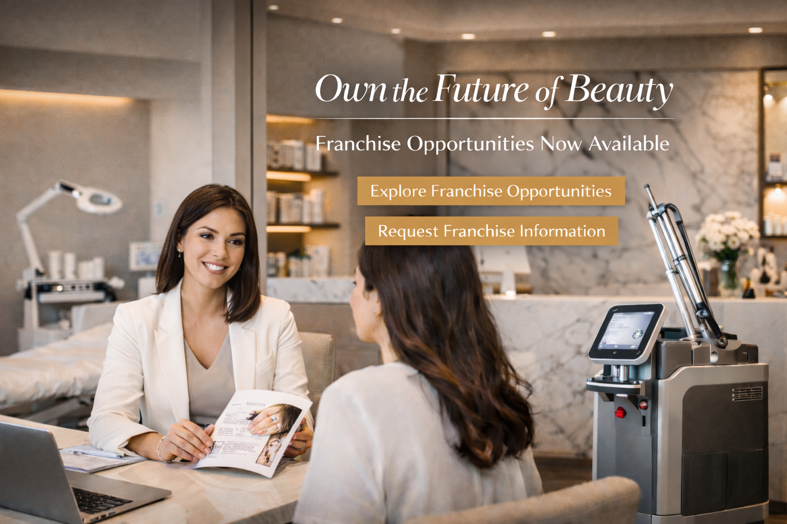With a proven brand, advanced treatment systems, comprehensive training, and ongoing operational support, we provide everything you need to build a successful, results-driven medical spa in your community.